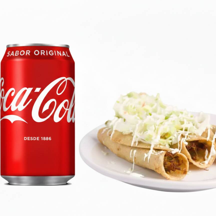 Tres flautas doraditas y crujientes (rellenas de tu sabor favorito), servidas con crema y queso. El paquete incluye un refresco bien frío para completar el match perfecto. ¡Rápido, rico y tradicional!