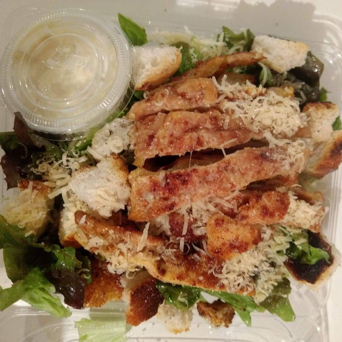 Mix de lechugas Crutones Queso Parmesano Fajitas de Pollo Aderezo Cesar