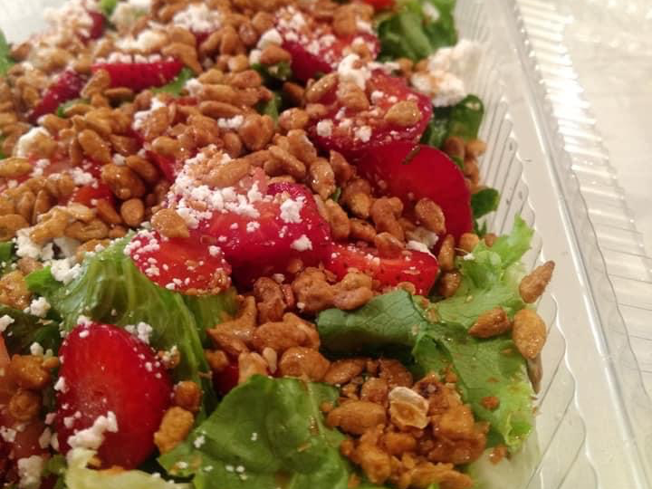 Mix de Lechugas, Fresa, Queso de Cabra, Semilla de Girasol Caramelizada , Vinagreta de Fresa y Limón