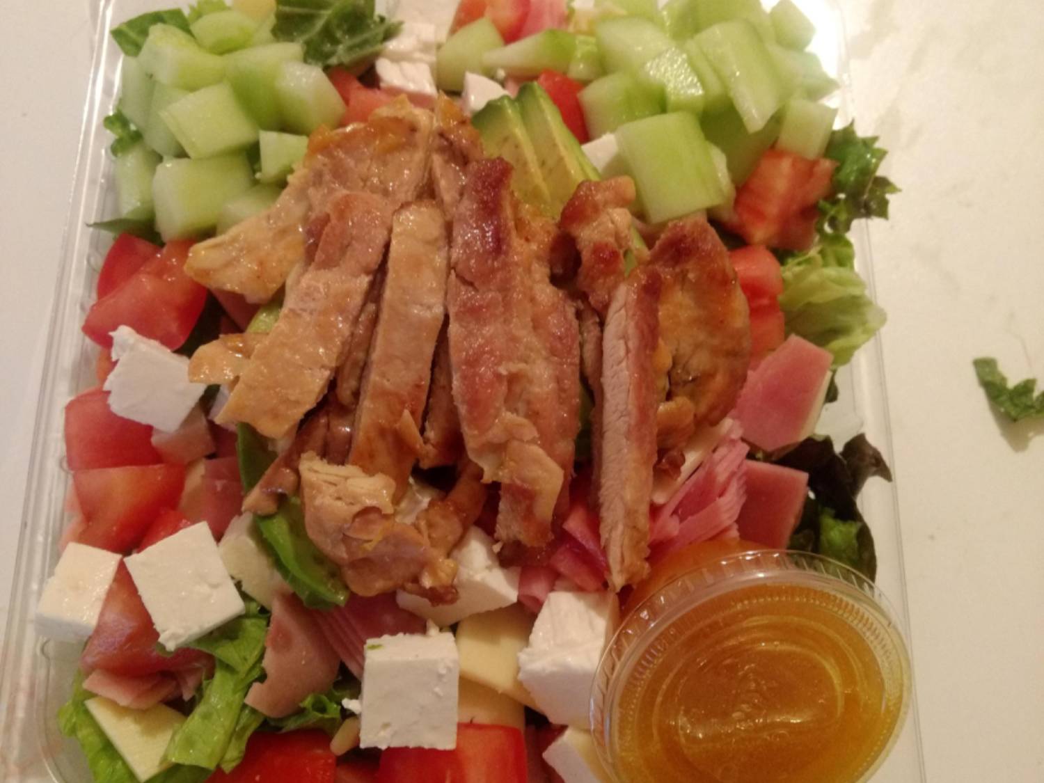 Mix de Lechugas Queso Panela Queso Manchego Jitomate Aguacate Fajitas de Pollo Jamón de Pavo Aderezo de la Casa