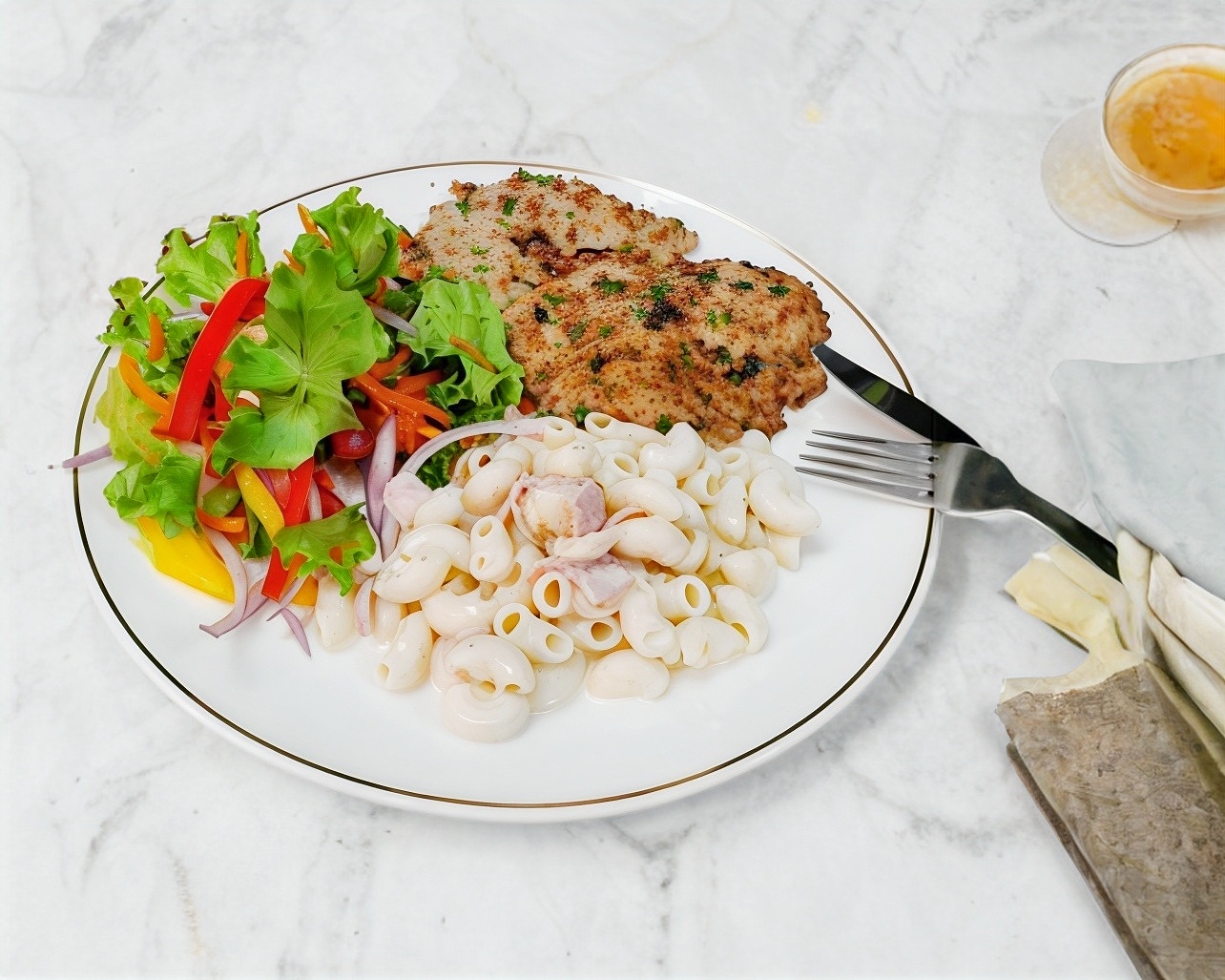 Pechuga empanizada 60 gramos con papas a la francesa 120 gramos + ensalada