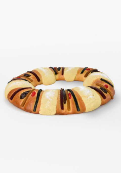 Masa estilo brioche, cubierta con una galleta fina sabor vainilla.