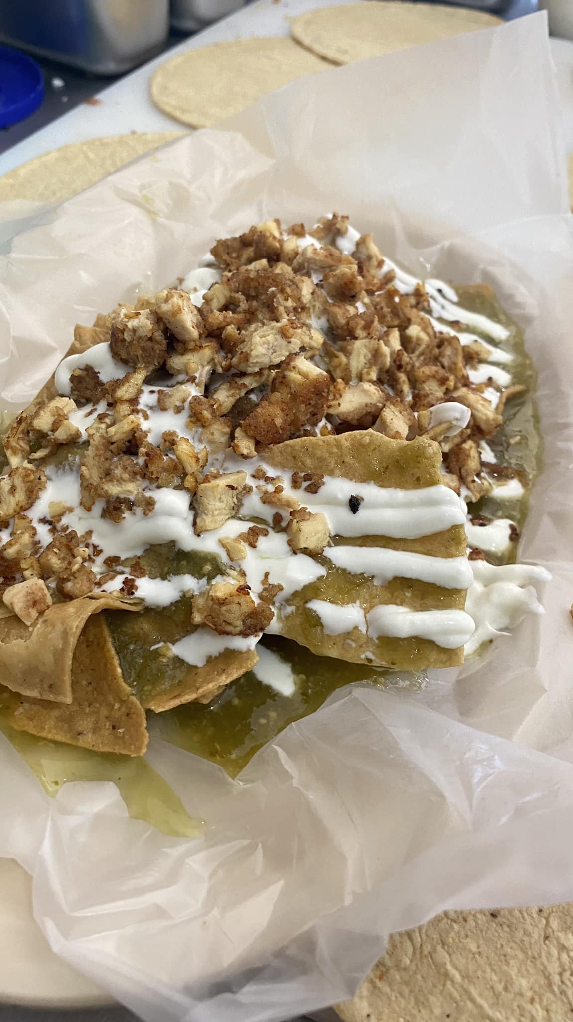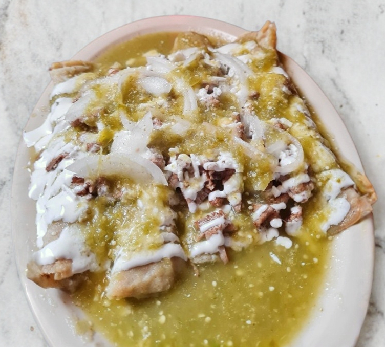 Preparada con frijoles, crema, jitomate, cebolla y aguacate.