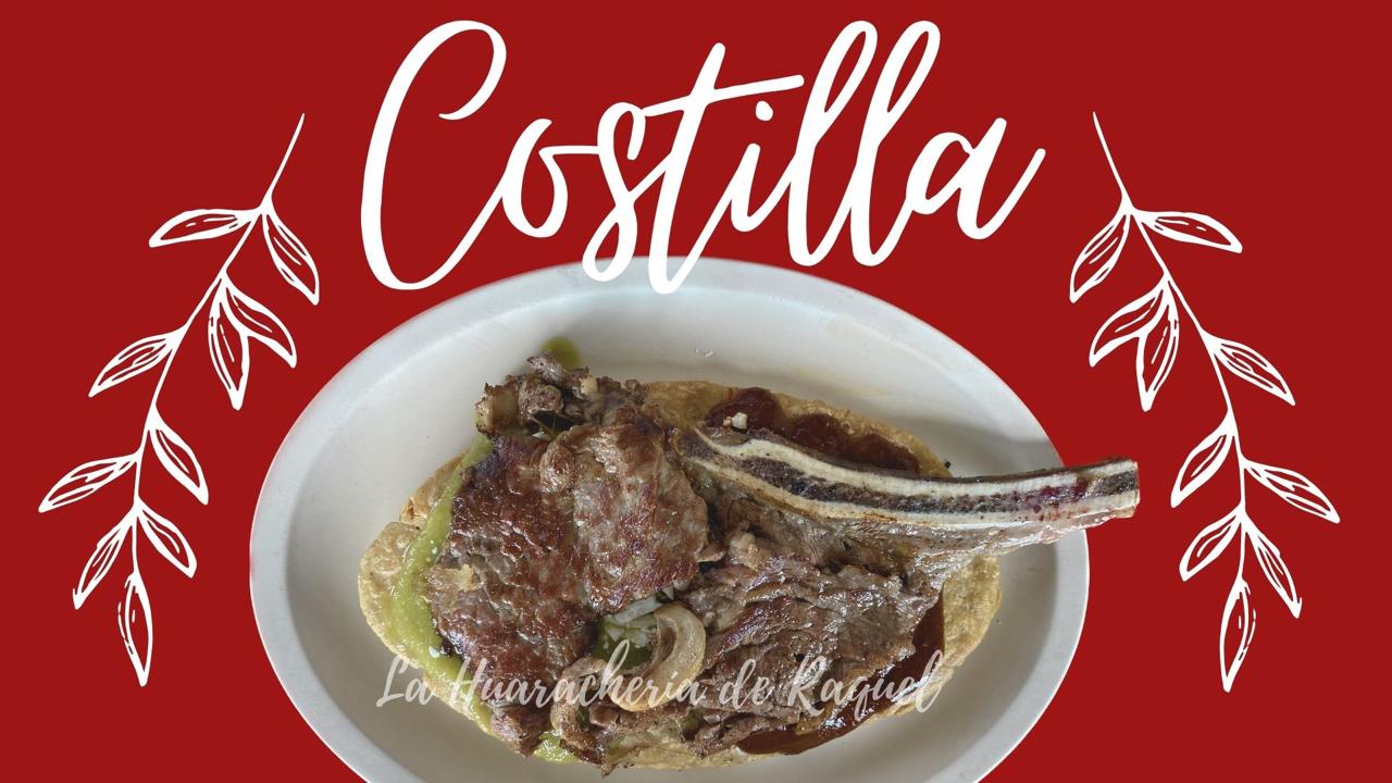 Exquisito huarache tradicional (24 cm) de masa relleno de frijoles acompañado de la proteína de tu elección (Costilla o Bisteck) y salsa aparte.