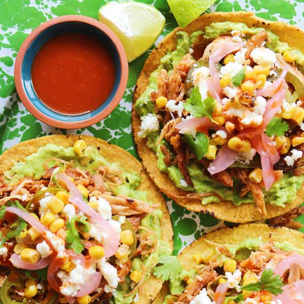Tres crujientes tostadas cubiertas con jugoso pollo deshebrado, fresco jitomate, lechuga y crema, coronadas con un toque de queso fresco. Sabor casero que siempre antoja.