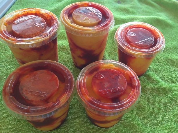 Nieve de mango con chamoy y Miguelito.