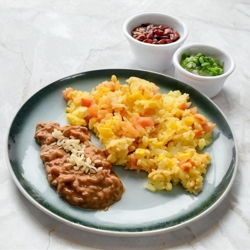 Huevos al gusto con frijoles refritos + bebida a elegir + 1 telera + 1 gelatina