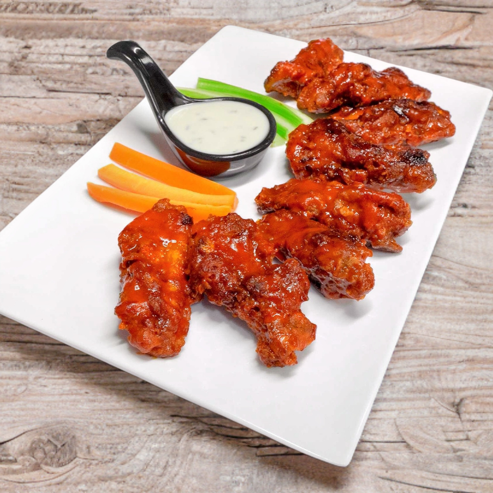 350 Gramos en crudo acompañadas de aderezo ranch, zanahoria y apio.