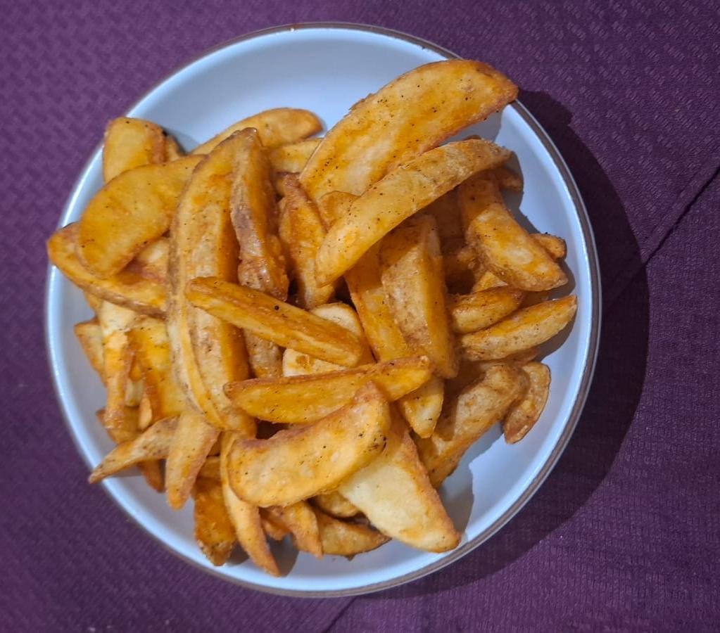 500 G de papas a la francesa sazonadas con sal y pimienta.