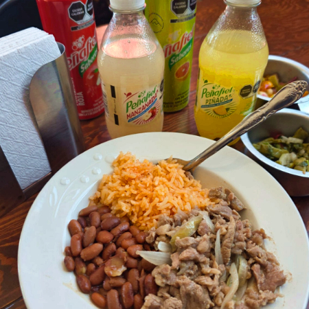 POZOLE ROJO DE POLLO CON SUS COMPLEMENTOS APARTE