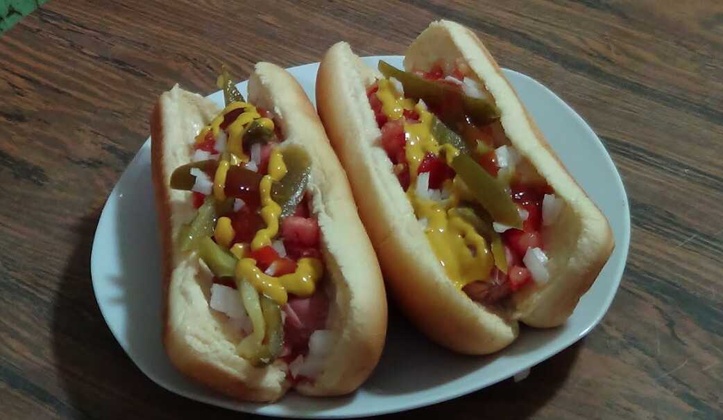 (3 Hot dogs) Rico pan con salchicha, chiles, jitomate, cebolla, cátsup, mostaza y mayonesa.