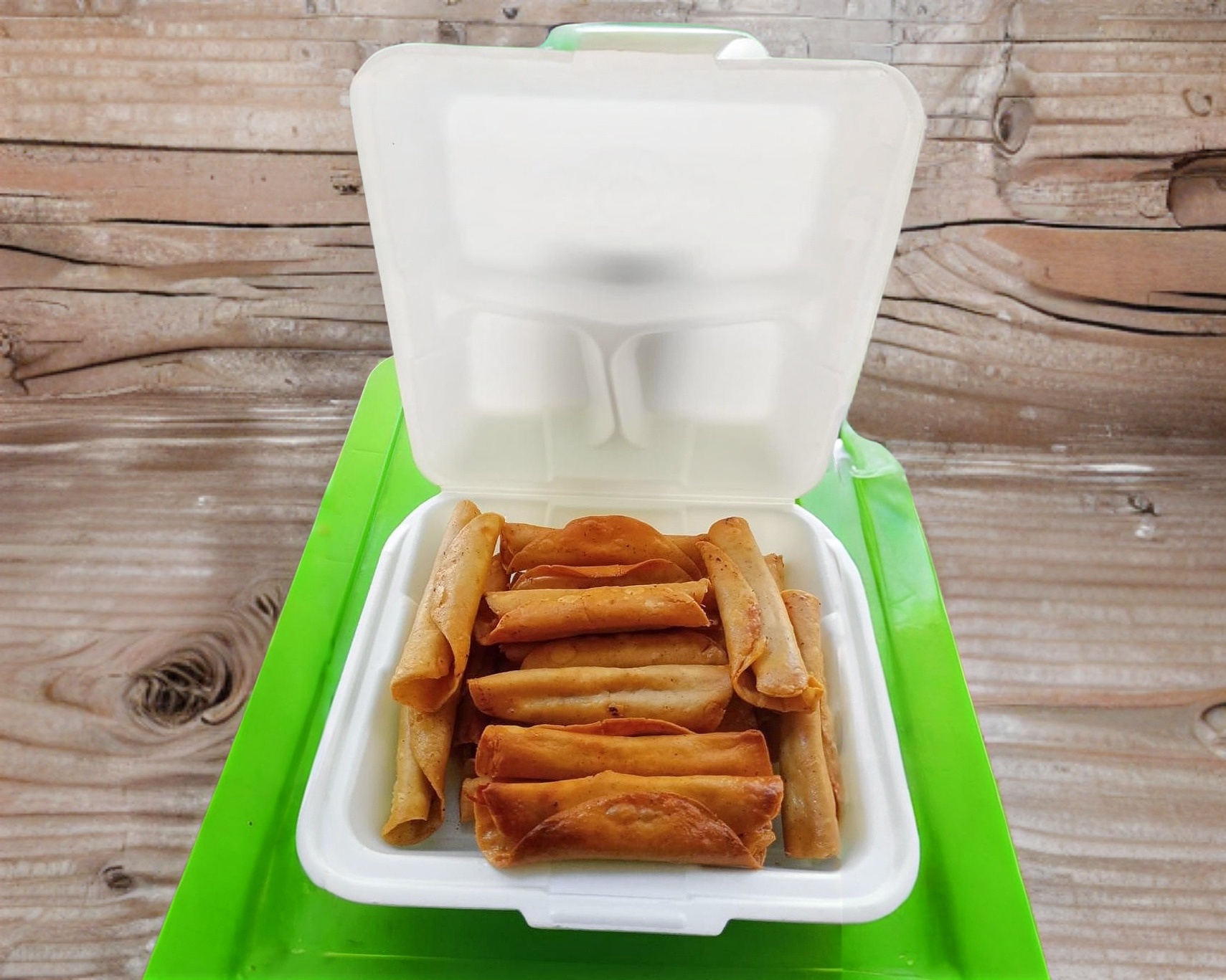 Crujientes tacos fritos rellenos de pollo, acompañados de queso, lechuga y crema.