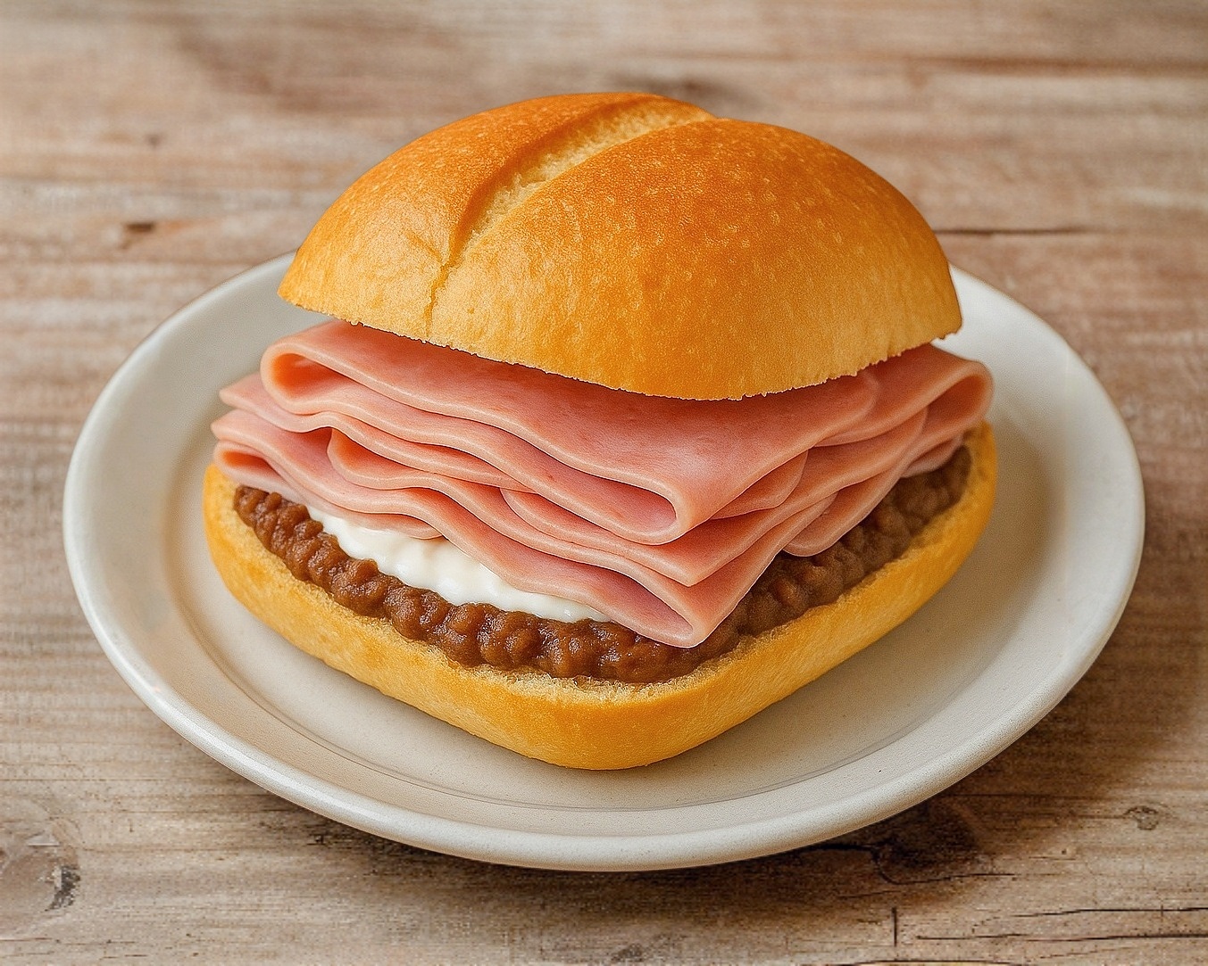 Torta con relleno a elegir, acompañada de frijoles y un toque de mayonesa.