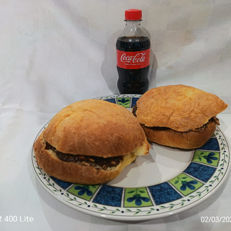 Marinas rellenas de mole rojo con pollo deshebrado 2 pzas , coca-cola de 355 ML 1 pza