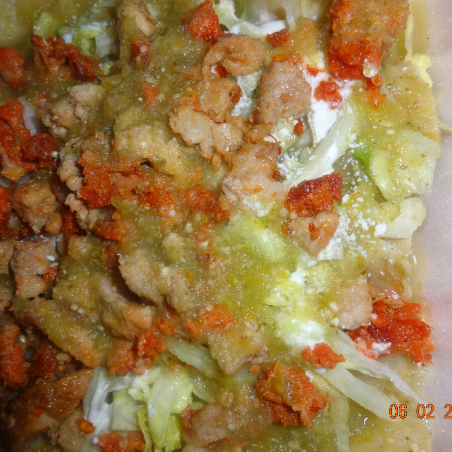 Mole verde,queso, crema,lechuga