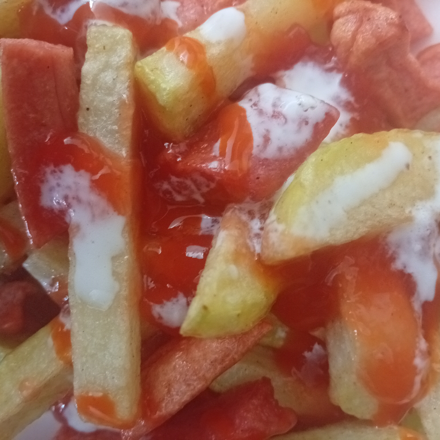 papas,salchichas,capsu,crema,salsa