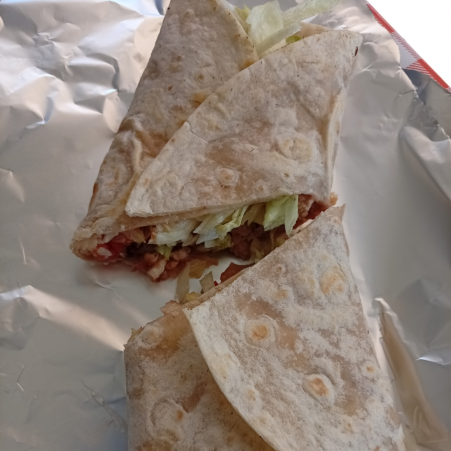 tortilla de harina 30cm, frijoles,carne(bistec y longanisa) lechuga, queso fundido, salsa