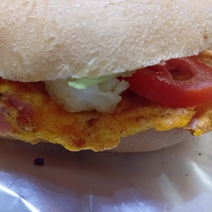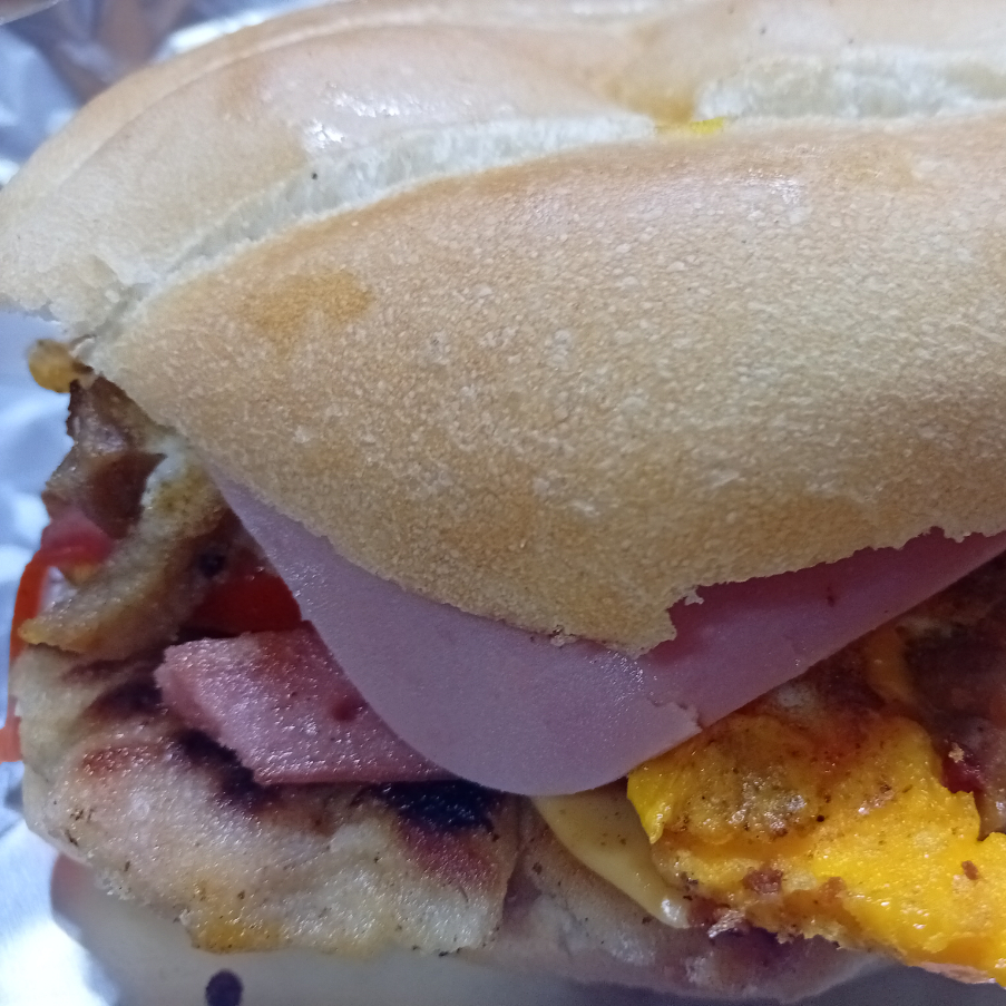 Pan normal, mayonesa,chiles,jitomate,huevo con jamón,lechuga y aguacate