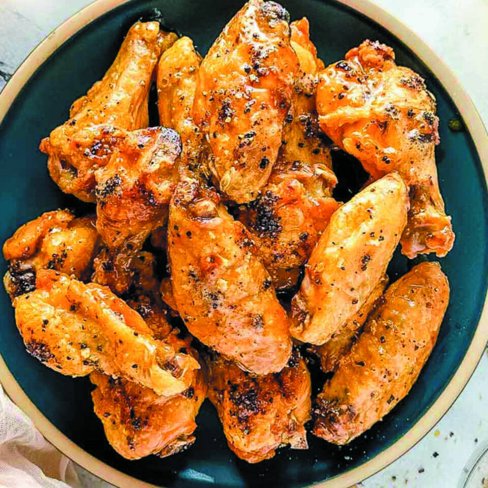 25 Alitas bañadas en salsa Lemon Pepper acompañadas de papas a la francesa.