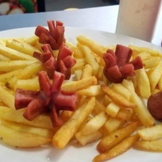 350 g De papas a la francesa, acompañadas de salchipulpos con mayonesa, mostaza, cátsup y salsa.
