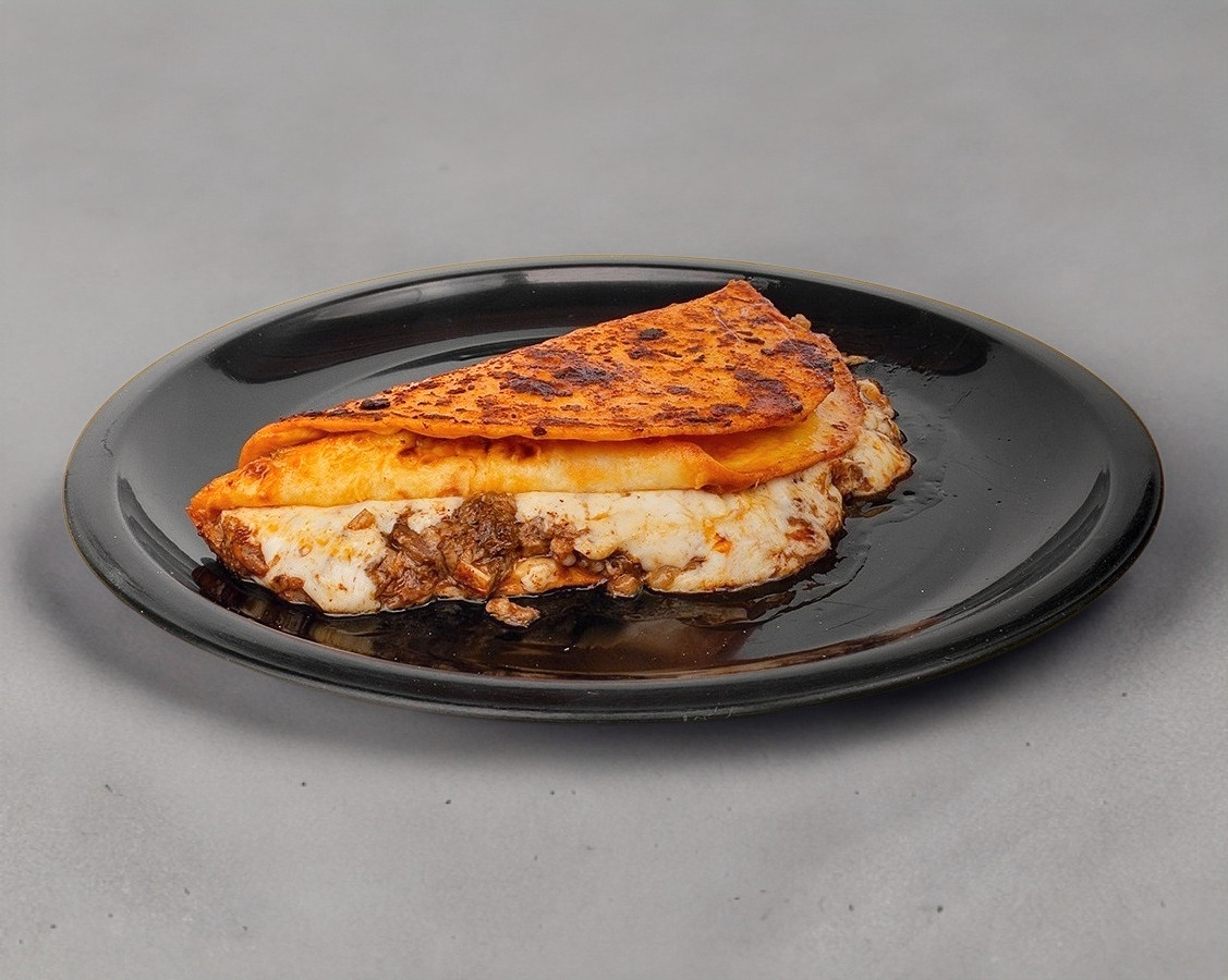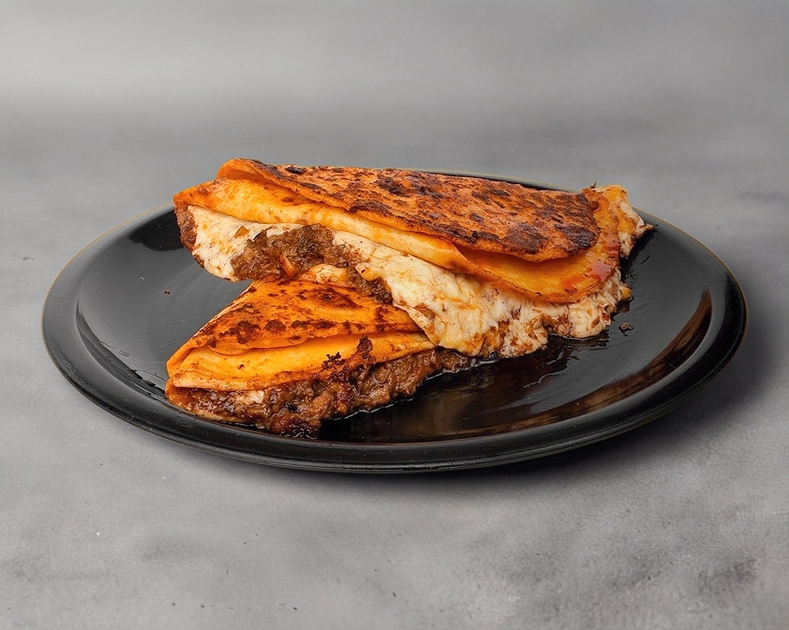 Dos quesas de harina bien doraditas, rellenas de carne jugosa y queso derretido, grandes, sabrosas y con actitud norteña, trae hambre.