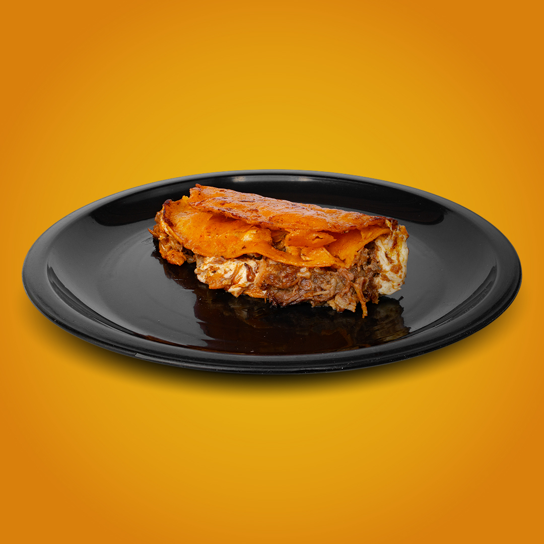 Más grande, más crujiente, más pecadora, la prima norteña de la quesabirria de maíz.