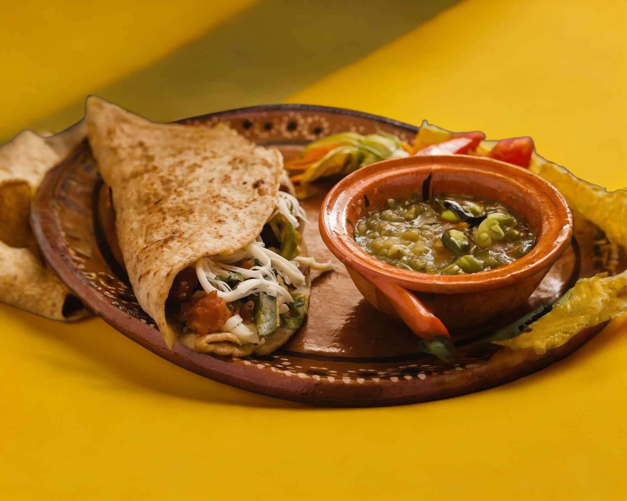 Quesadilla de maíz al comal con guisado a elegir, acompañadas de lechuga, queso, crema.