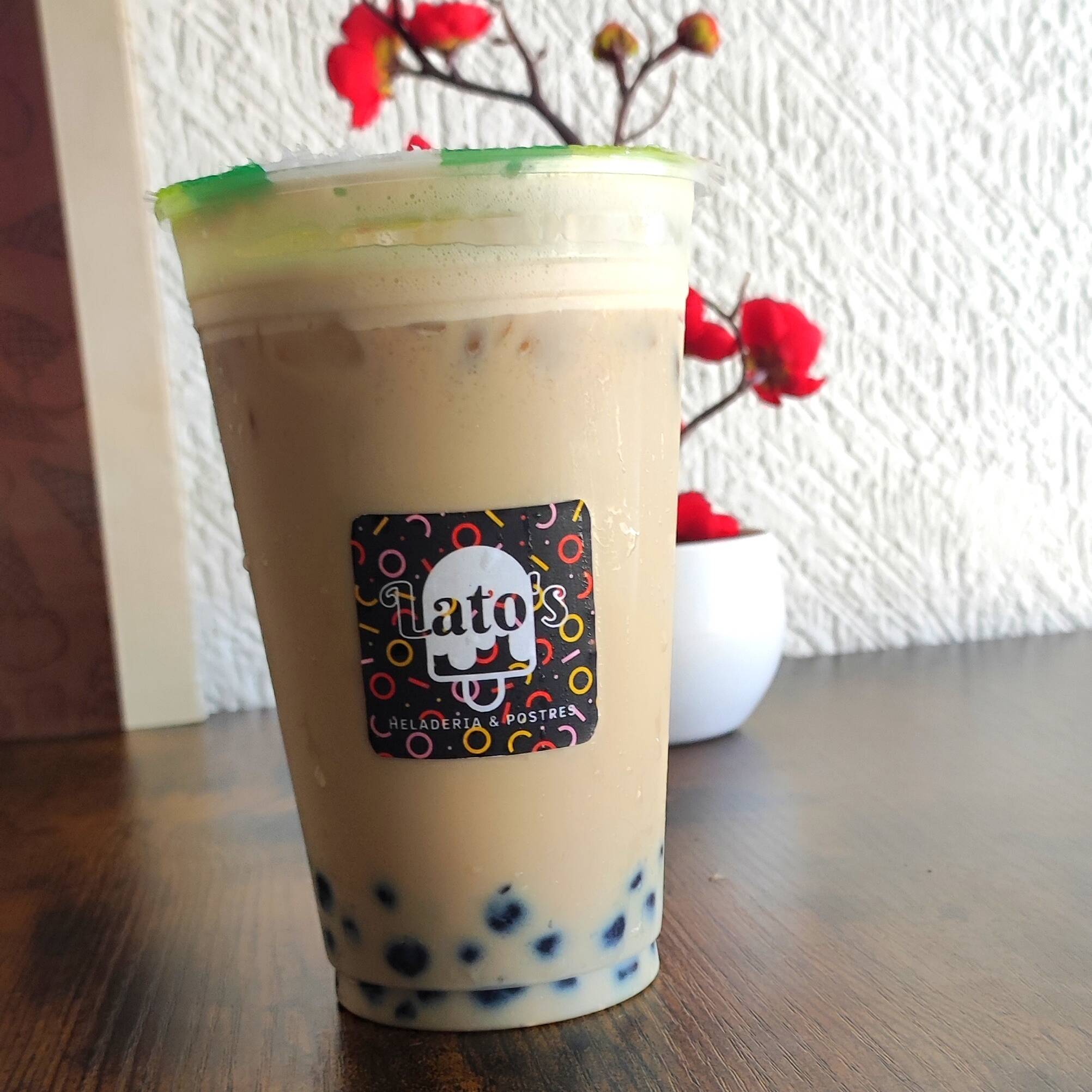 Vaso del 16, Bebida fría con hielos o en frappé a base de leche de tu elección, sabor Té Matcha con tapioca o perlas explosivas.
