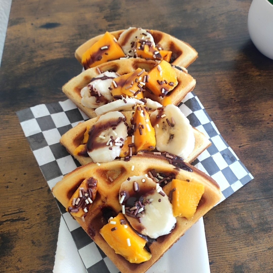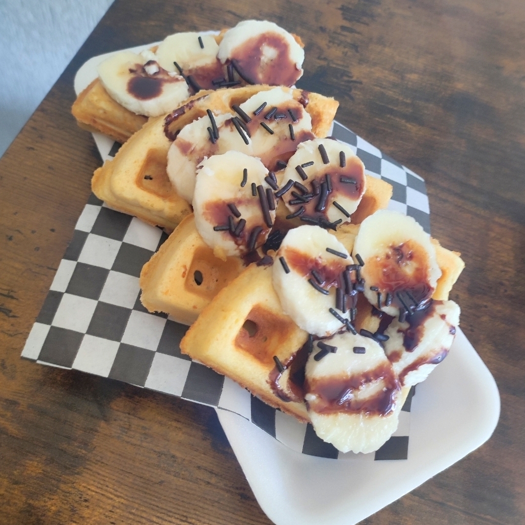 1 waffle de 4 pzs, 1 untable, 2 toppings, granillo.