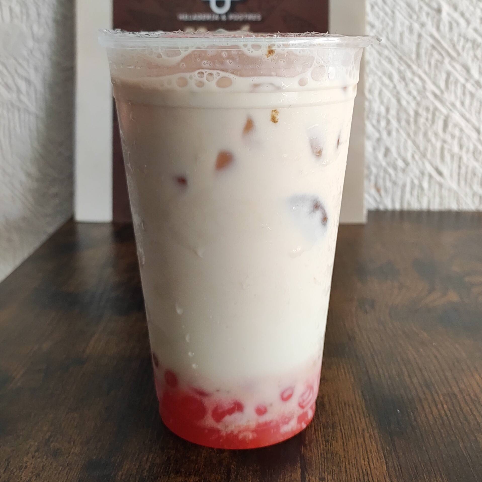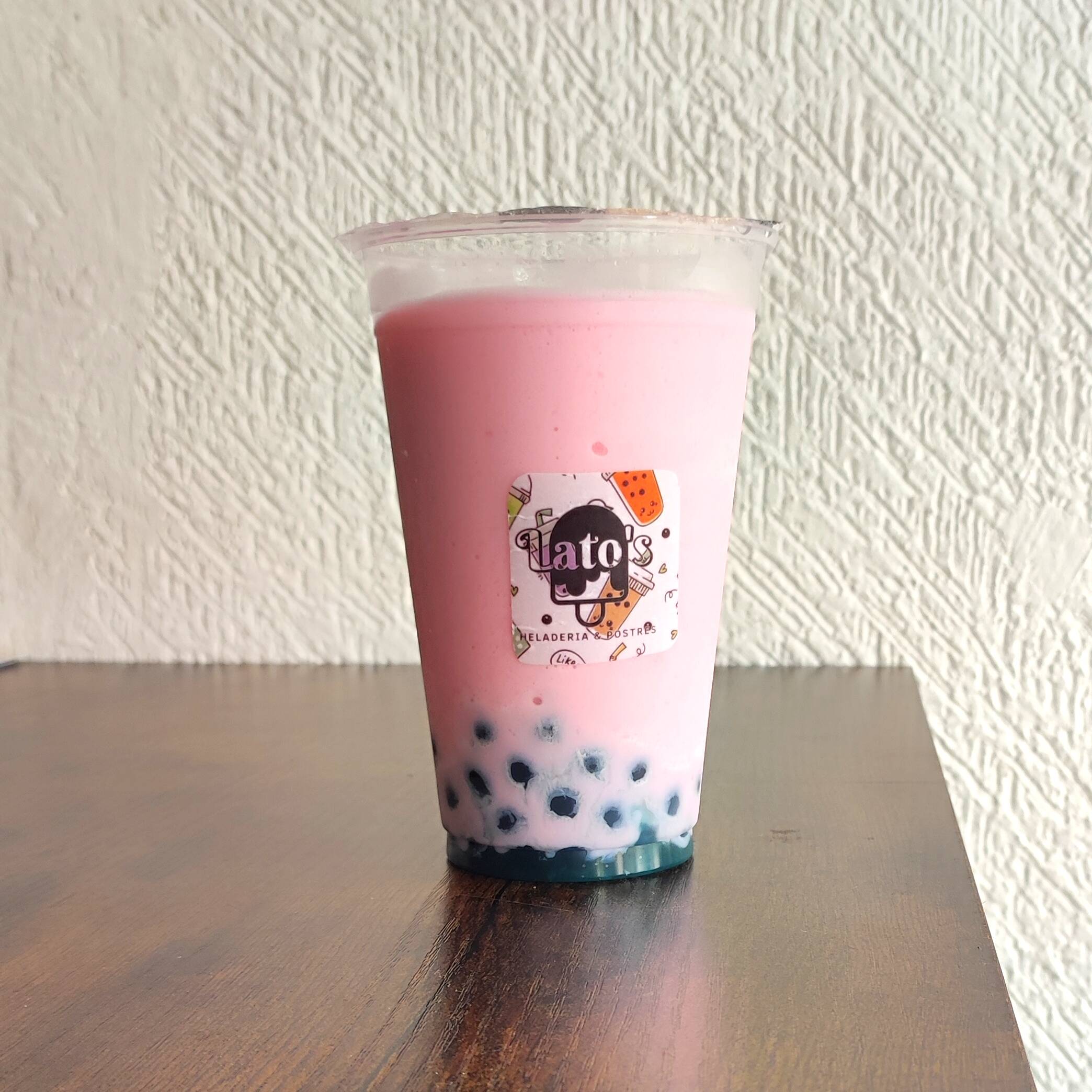 Vaso del 16, Bebida fría con hielos o en frappé a base de leche de tu elección, sabor Fresa con tapioca o perlas explosivas.
