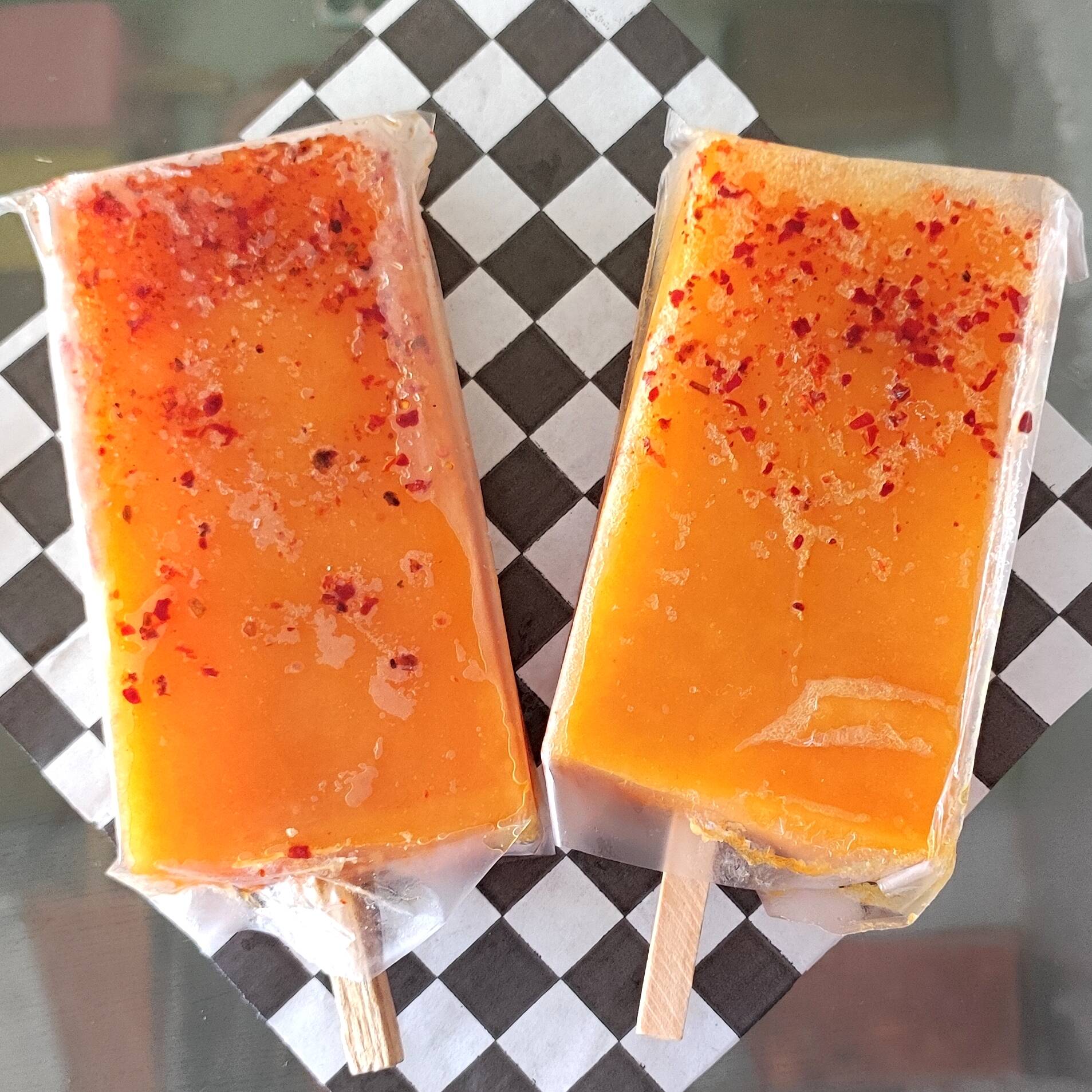 Paleta tamaño grande de MANGO CON CHILE hecha a base de agua.