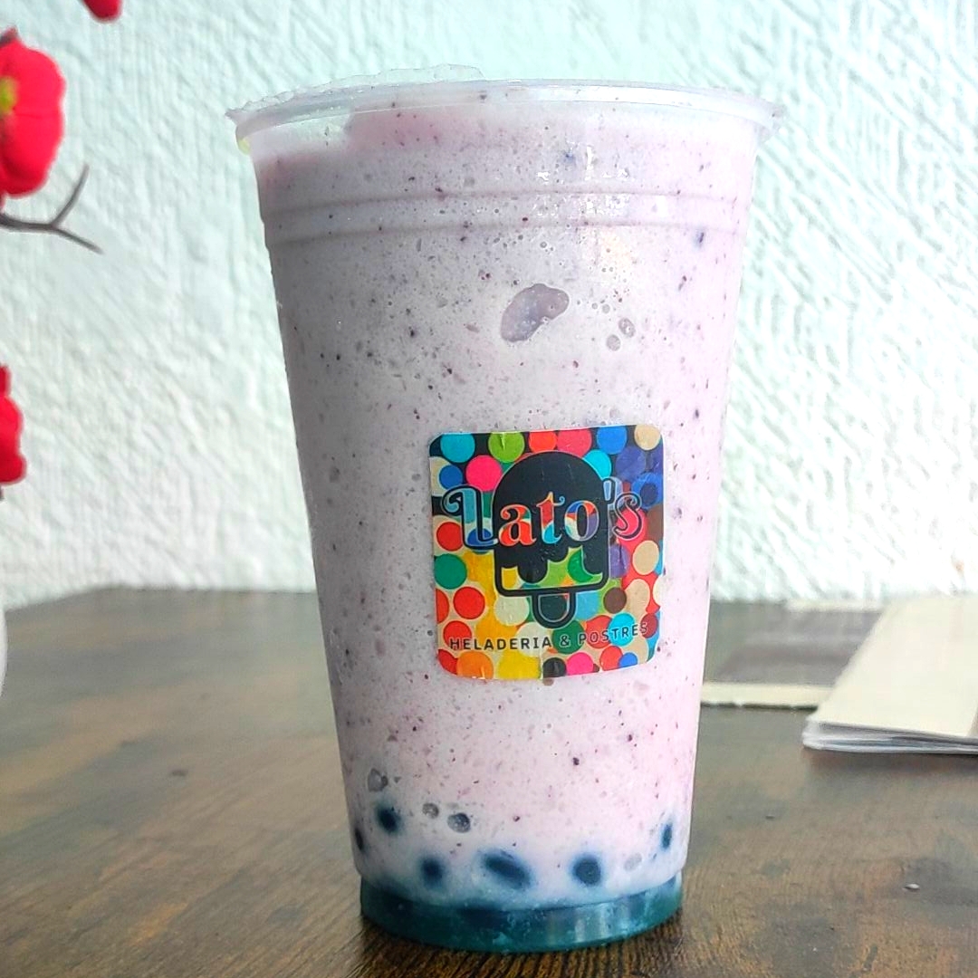 Vaso del 16, Bebida fría con hielos o en frappé a base de leche de tu elección, sabor BLUEBERRY con tapioca o perlas explosivas.