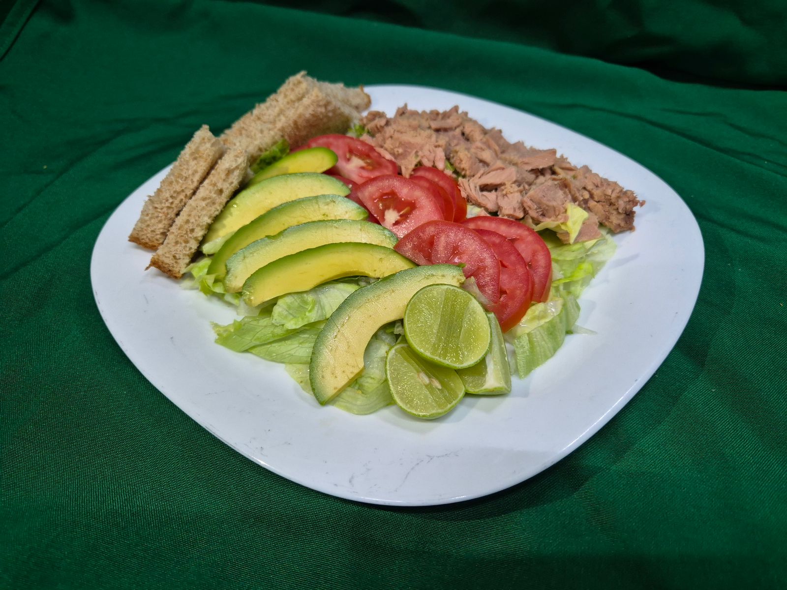 Lechuga, jitomate, aguacate o pepino, con aderezo chipotle. Incluye pan integral.