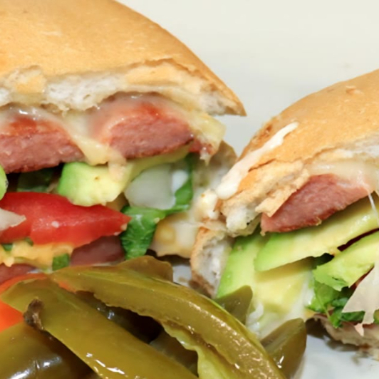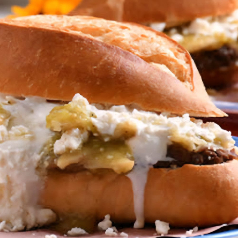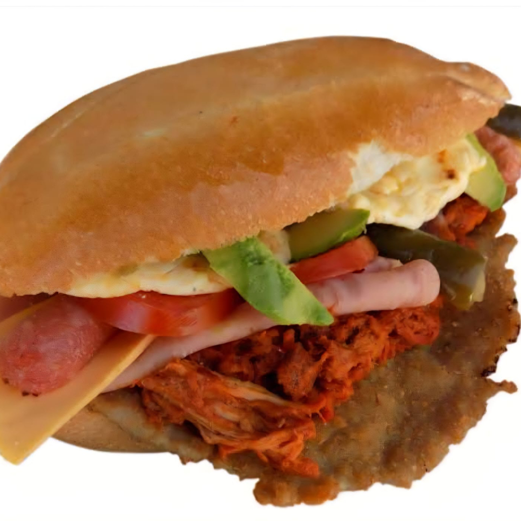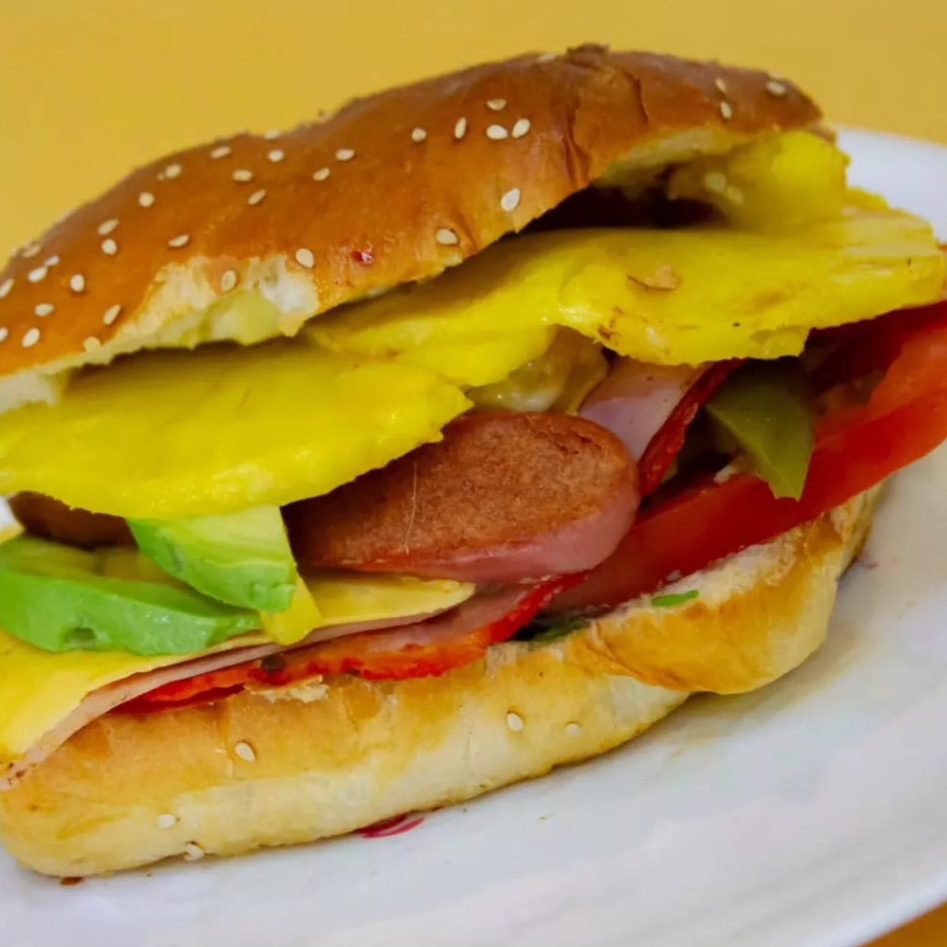 Carne de res jugosa, lechuga, jitomate, chile, queso amarillo y aderezo al gusto.