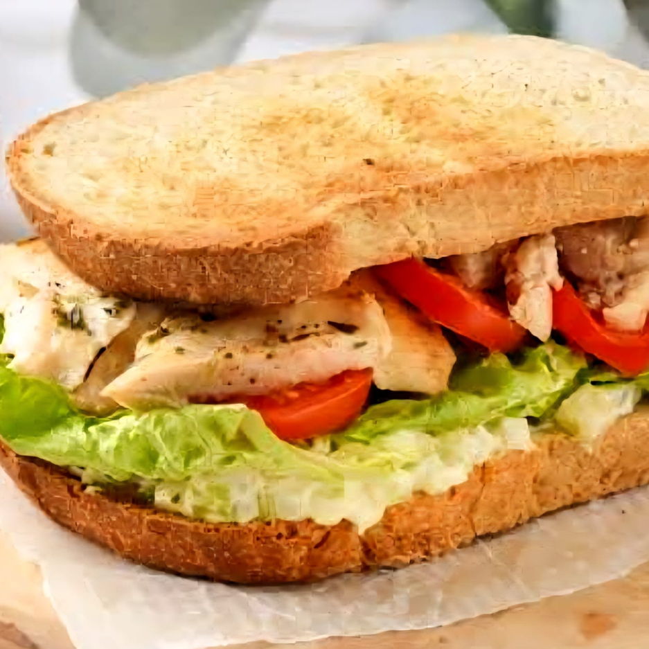 Pechuga de pollo asada y jugosa, con queso, lechuga y jitomate, ideal para una opción ligera y deliciosa