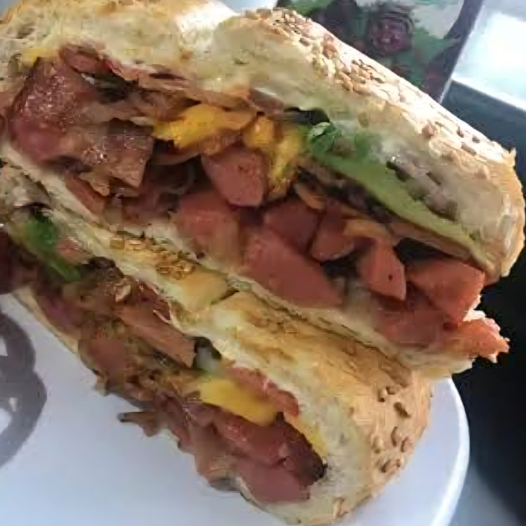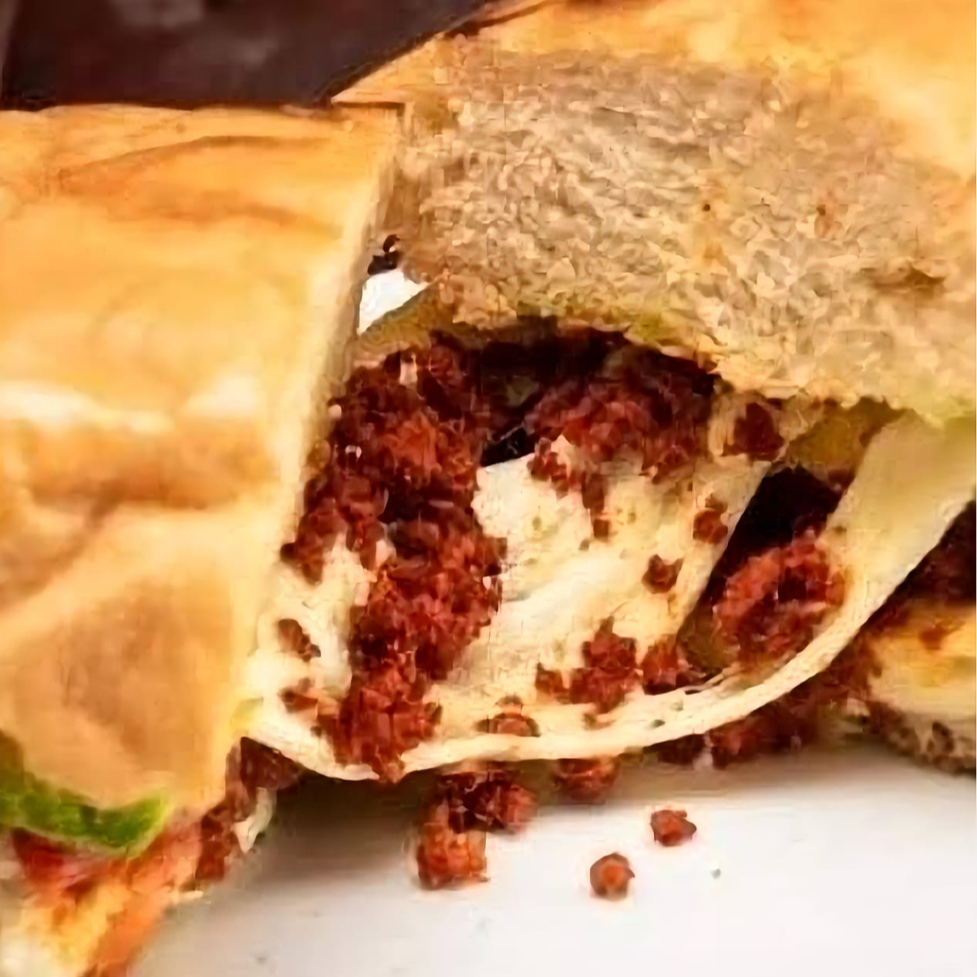 Tortilla de harina de jamón, y queso oaxaca.