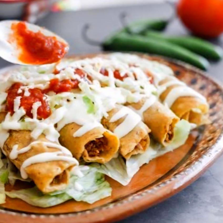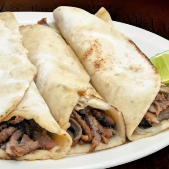 Servidos en tortilla caliente, acompañados de salsa.