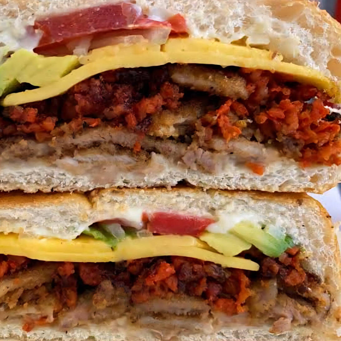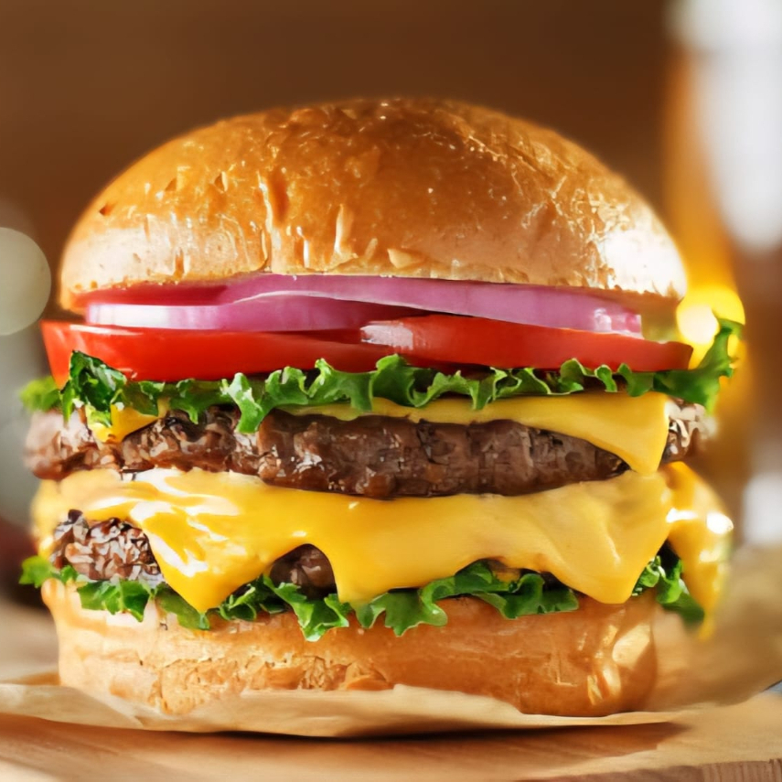 Doble carne de res con queso, vegetales frescos y aderezos para un sabor irresistible.