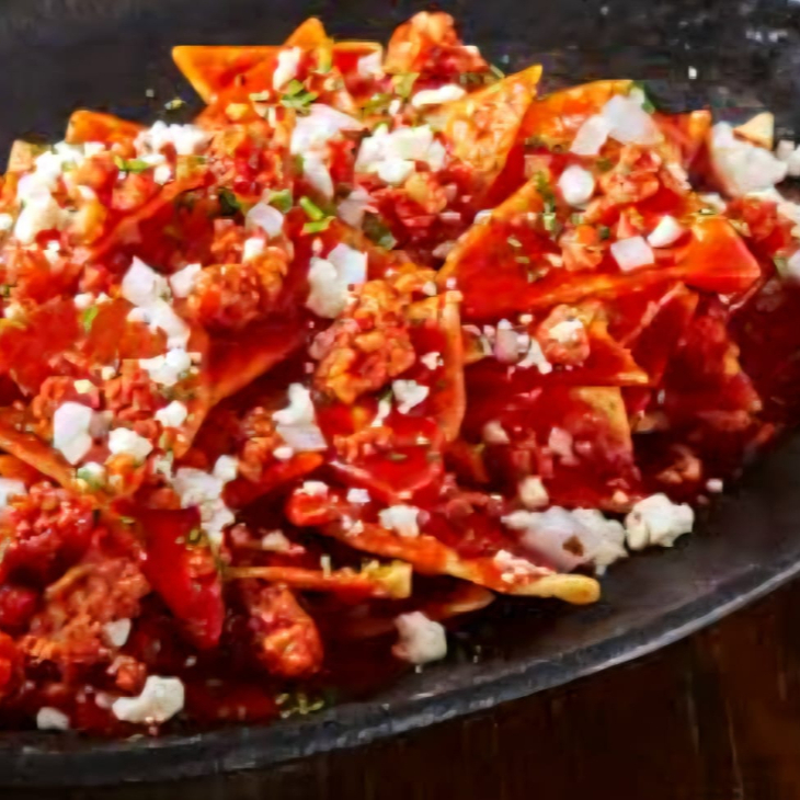 CHILAQUILES ROJOS DE CHORIZO