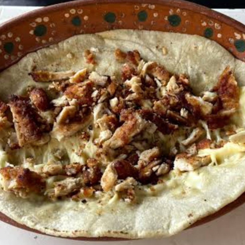 Con pollo, rellenas de frijoles y queso oaxaca