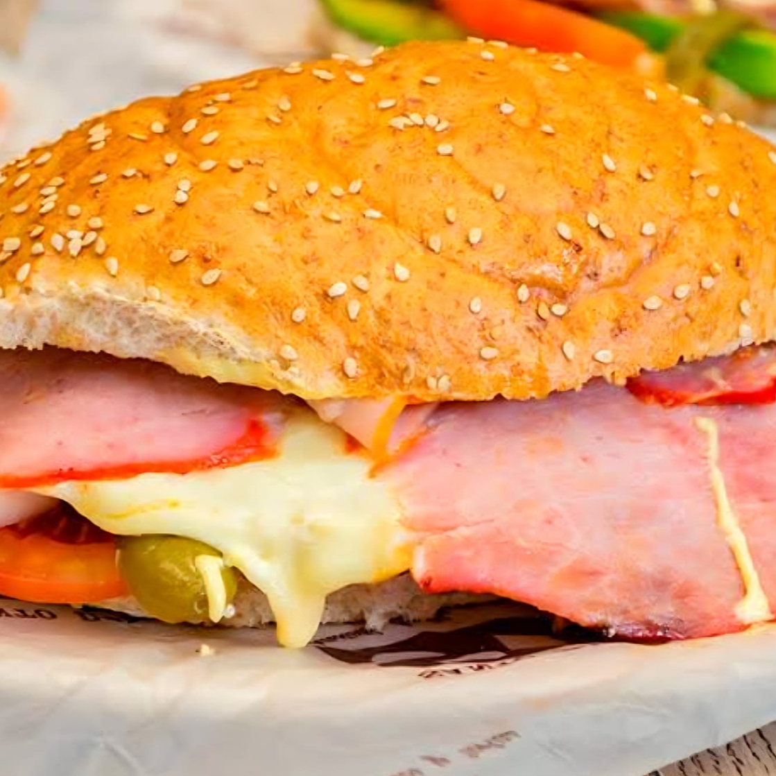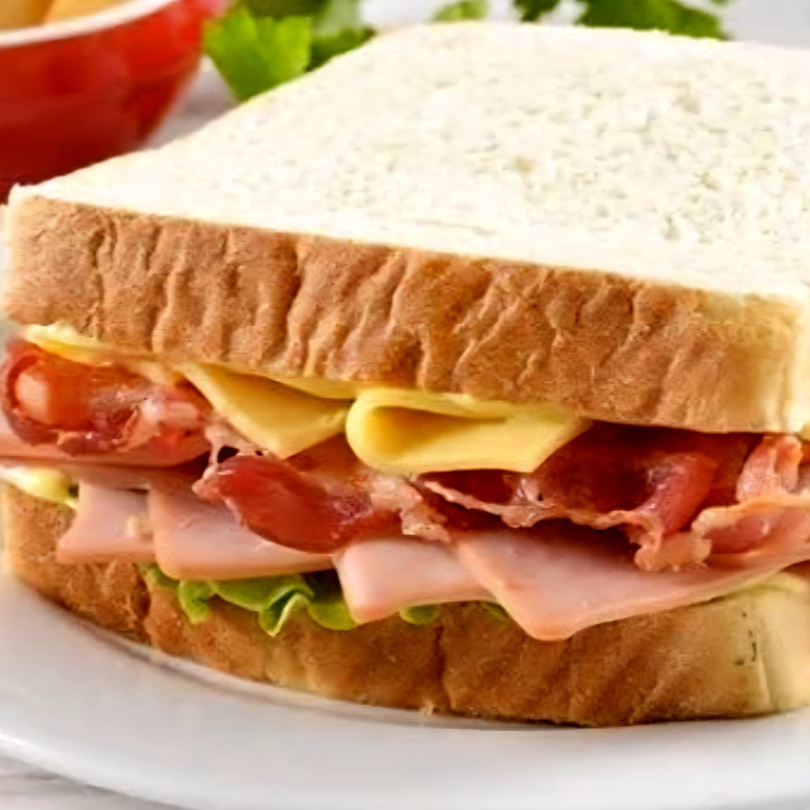 Clásico y delicioso, con pan suave, rebanadas de jamón fresco, queso, lechuga y jitomate