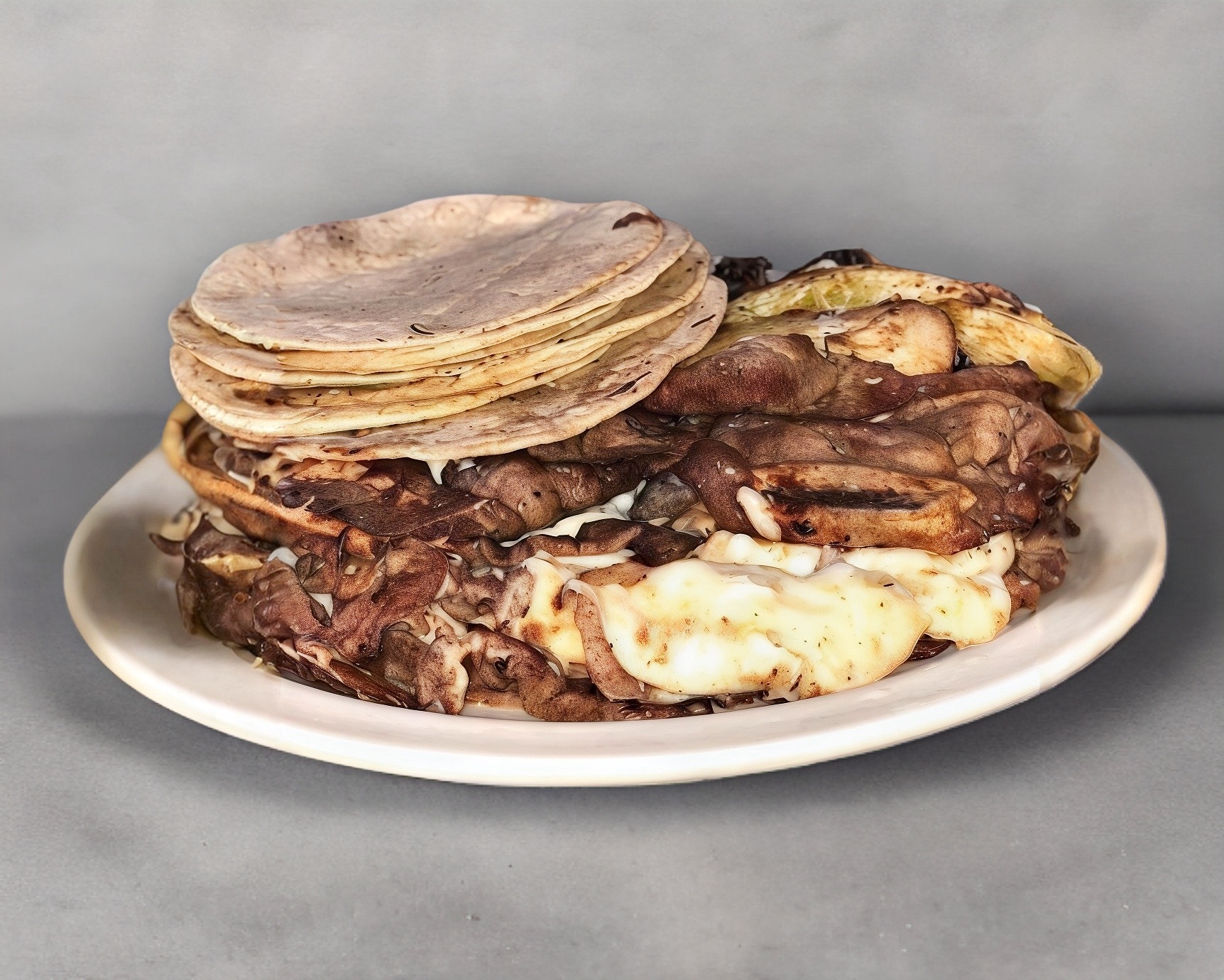 250 gr de carne Con porción de papas, cebollitas y nopales 12 tortillas para una