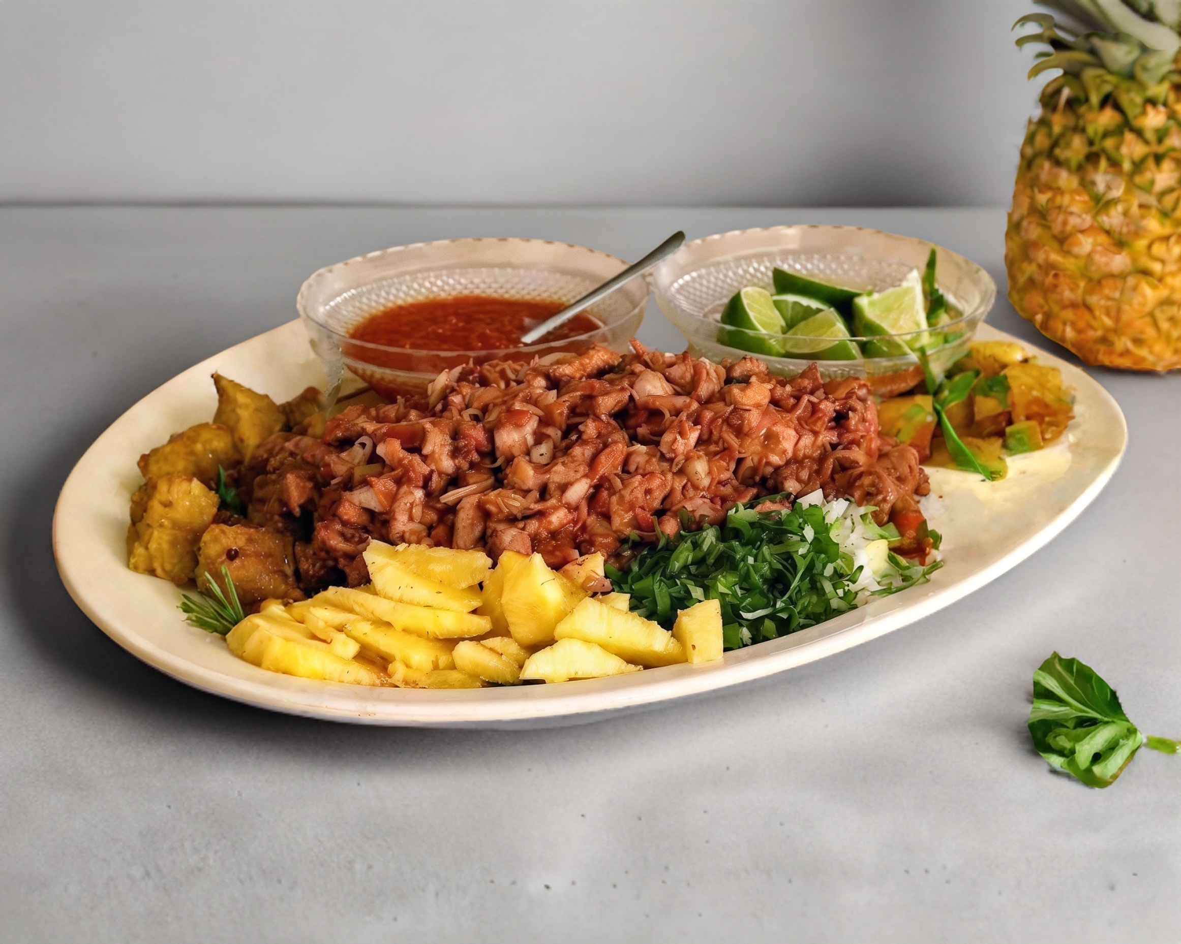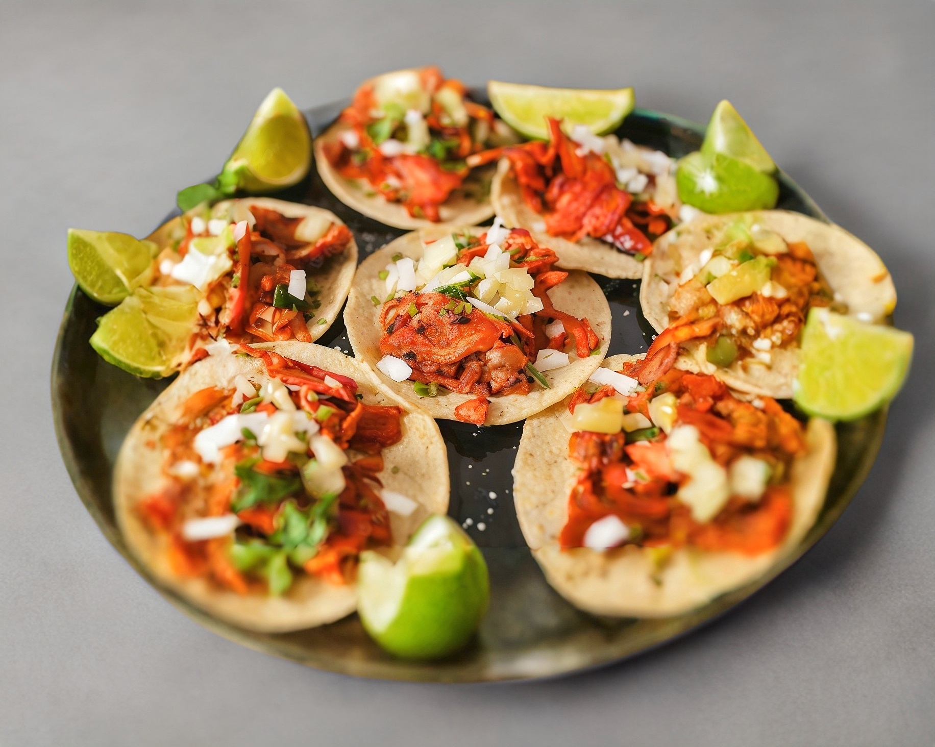 Medio kilo de carne. Elige carne, verduras, cilantro, cebolla, piña, limones y salsa a elegir: verde, roja o guacamole. 15 tortillas medianas (para máximo 2 personas).
