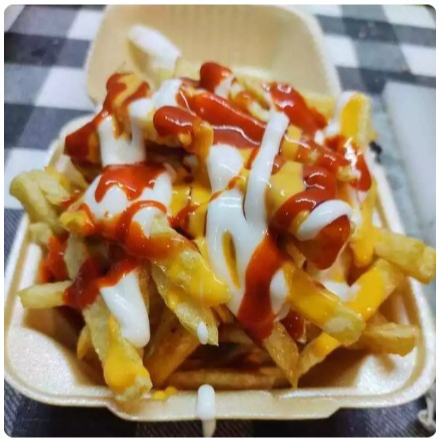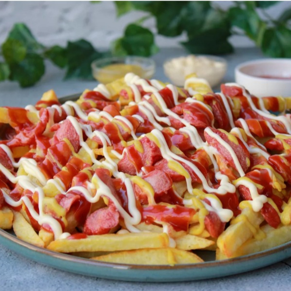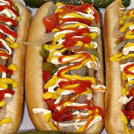 SALCHICHA, TOCINO, CEBOLLA CARAMELIZADA Y/O NORMAL, JITOMATE, CHILES, MOSTAZA, CATSUP, CREMA