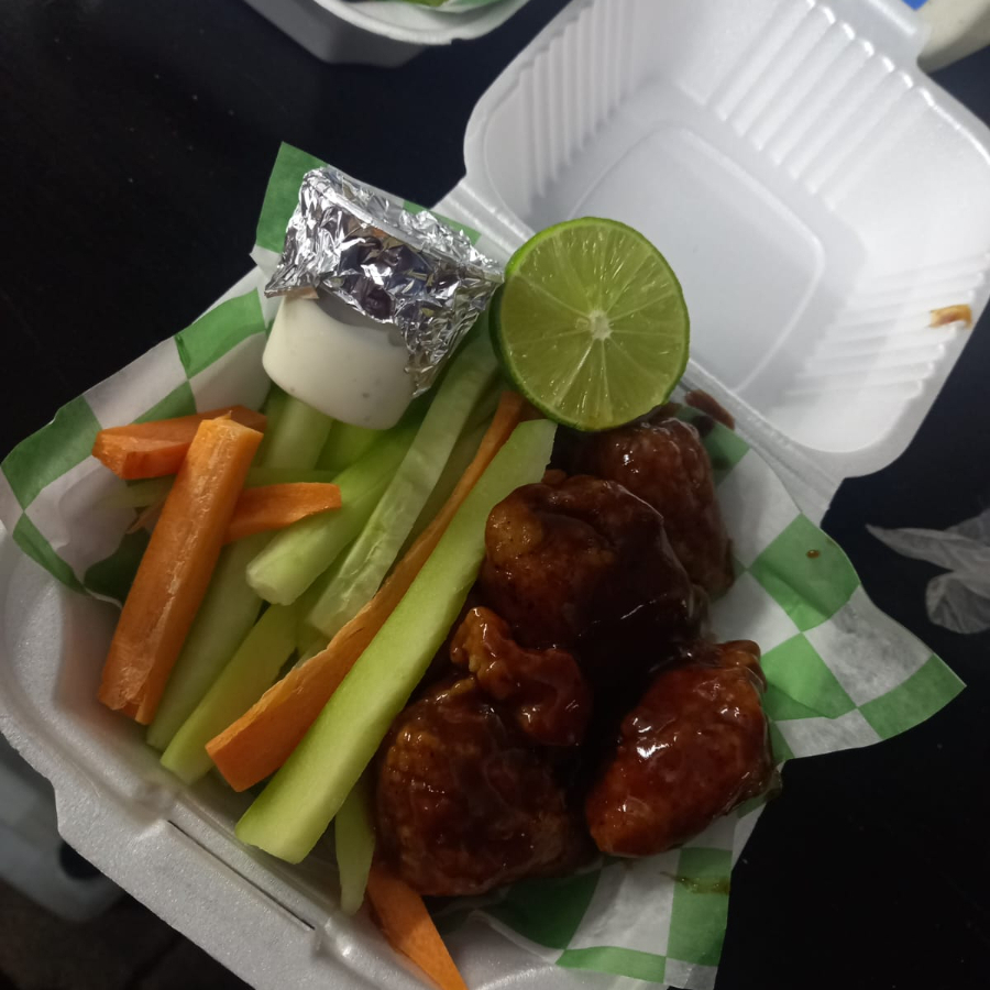 8 piezas de boneless acompañados de lechuga, pepino, zanahoria, limon, aderezo ranch.