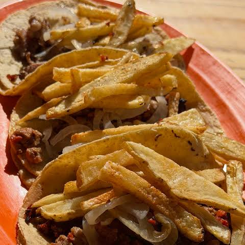 Taco Gigante con tortilla echa a mano el taco incluye papas fritas y cebolla