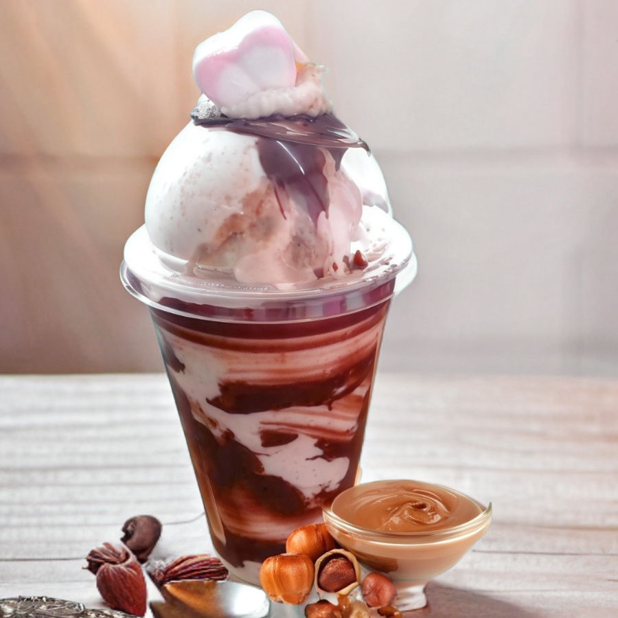 Vaso 16 oz. Deliciosa bebida helada preparada a base de hielo granizado, leche entera y Mazapan de la rosa. Se decora con jarabe de chocolate y un rico bombón.