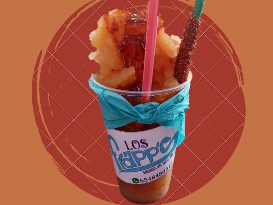 Deliciosa bebida helada preparada a base pulpa de tamarindo, cubierta de rico chamoy casero y decorada con una banderilla de tamarindo.