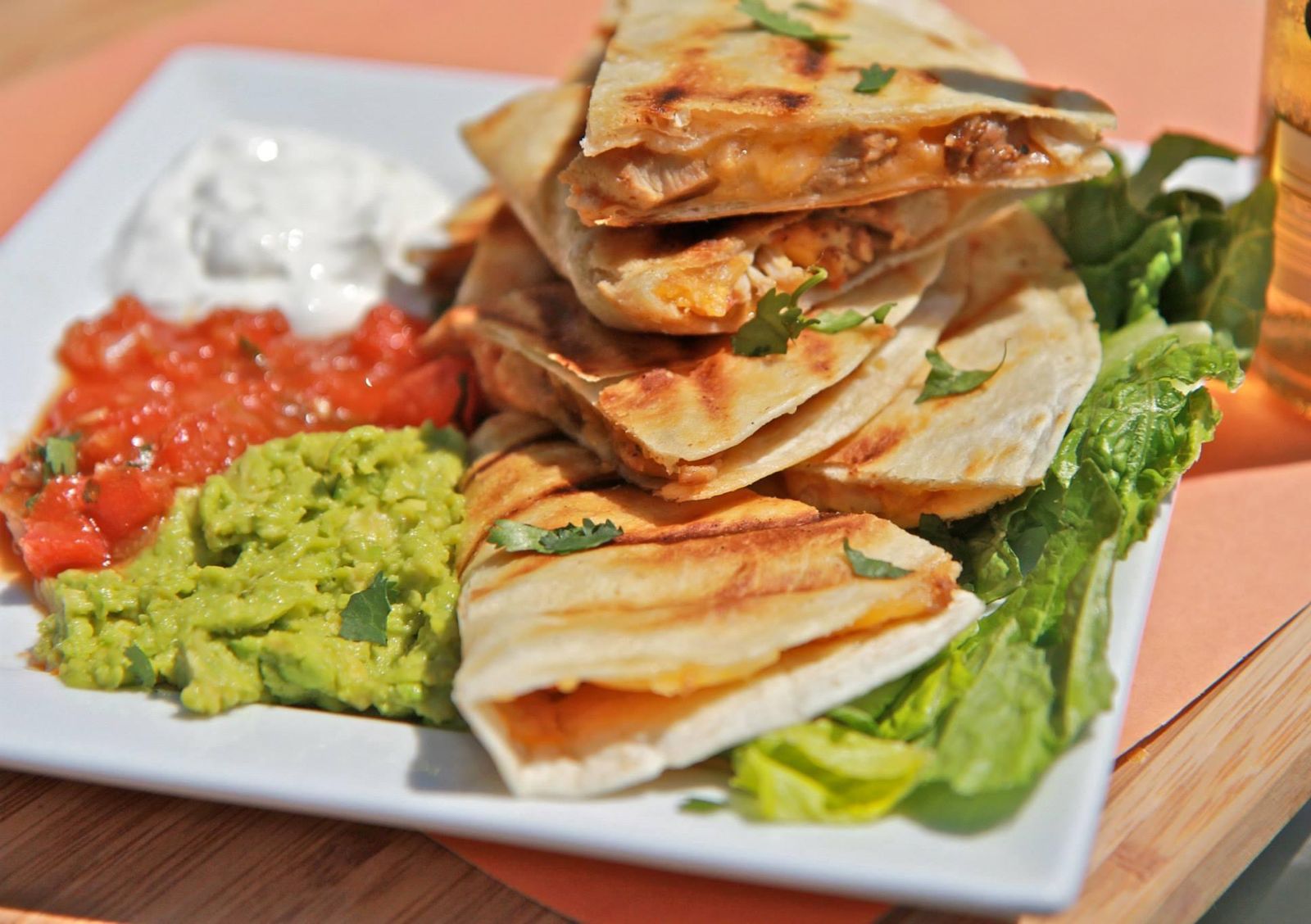 4 TRIANGULOS DE TORTILLA DE HARINA, QUESO Y DELICIOSO PASTOR Y GUACAMOLE