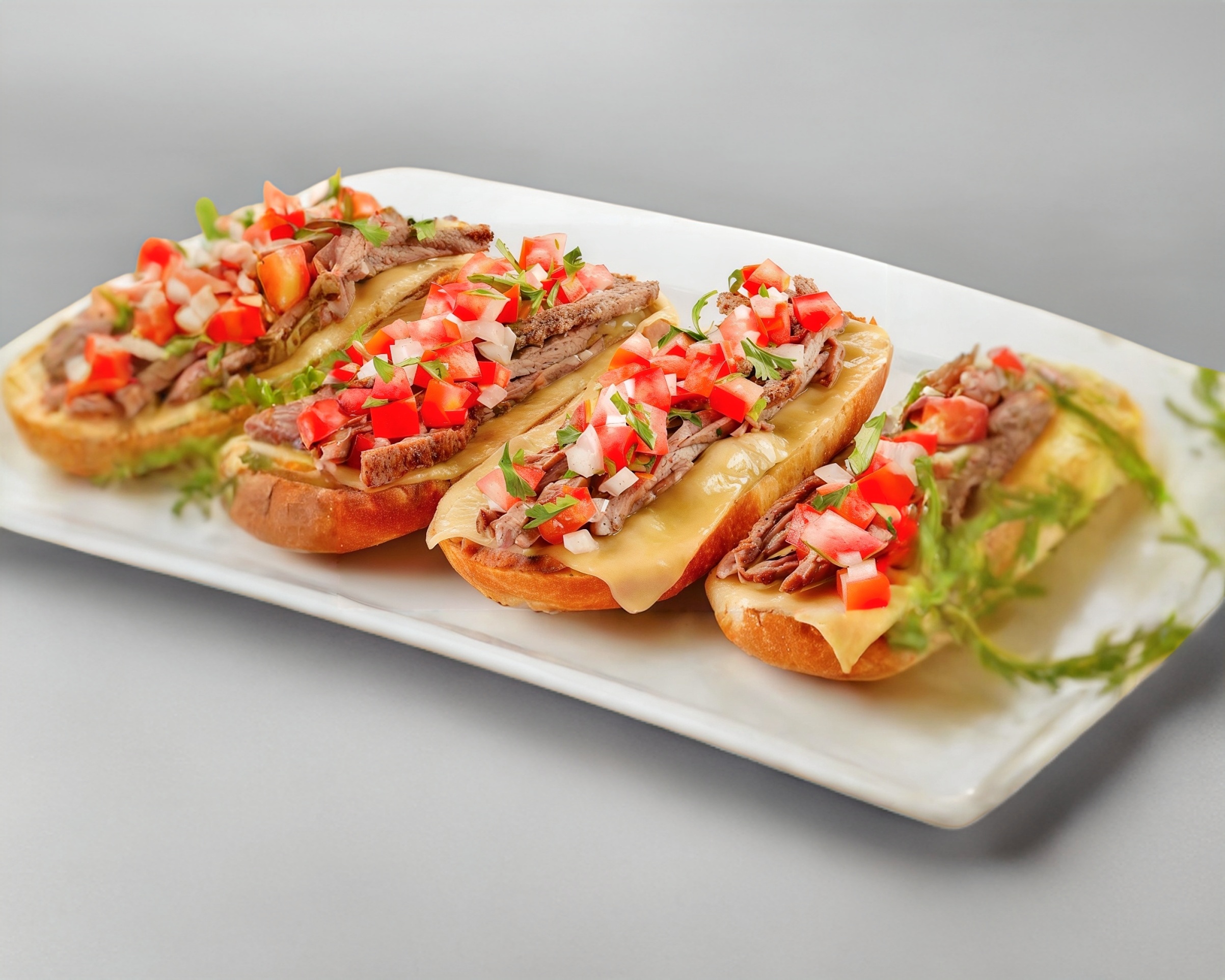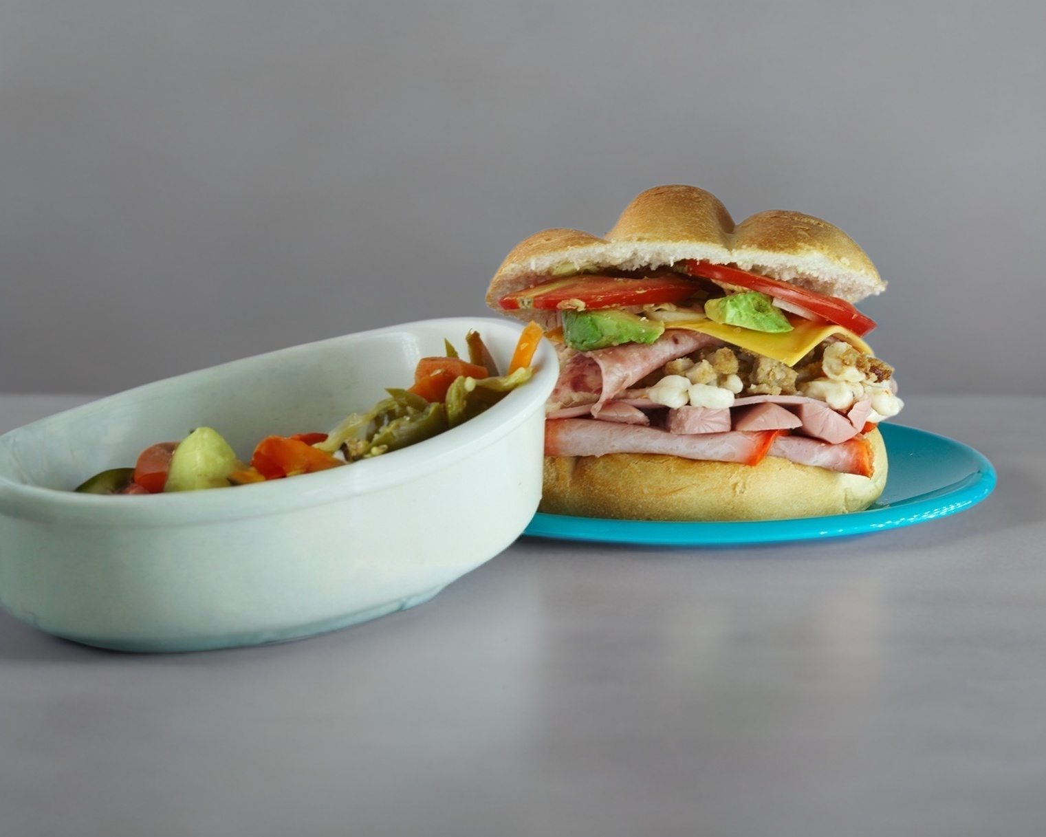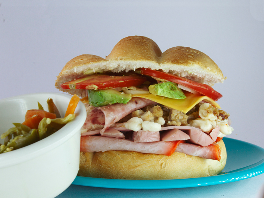 Milanesa, pierna, salchicha, jamón, queso oaxaca, queso amarillo y quedo de puerco. Preparadas con lechuga, jitomate, aguacate y picante.